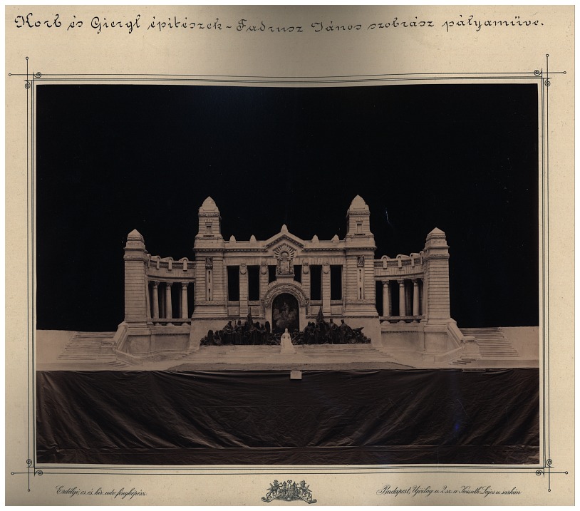 2 db mappa : celloidin ; 42,5x33 cm kartonon 28,5x21,5 cm fényképméret. Kötetadat: [1]. - 31 db fénykép [2]. - 30 db fénykép. A pályázatra érkezett pályaművek fényképei. A fényképész Erdélyi Mór, császári és királyi udvari fényképész. A felvételek 1903-ban készültek A mappában különálló kartonokra kasírozott fényképek vannak. Hajtogatós szürke mappa, aranyszínű betűkkel feliratozva
