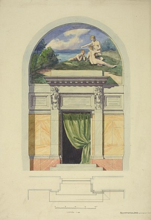 Belső térben lévő ajtó és a hozzá tartozó környezet terve