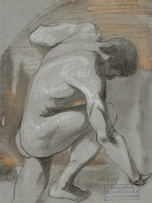 Technika: szén, fehér és barnás kréta