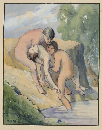In: Falképtervek, figurális kompozíciók (16. mappa) Adatok: grafika, 1 db, akvarell, 320x284 mm, szürke papír, 399x284 mm, vízfesték