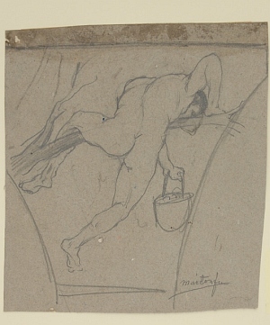 Faágon ülő, gyümölcsös kosarat beadó ifjú In: Falképtervek, figurális kompozíciók (16. mappa) Adatok: grafika] :, 1 db, rajz, 218x198 mm, szürke papír, ceruza Információ: Tárgyszavak: Leltári szám: 16/08.b