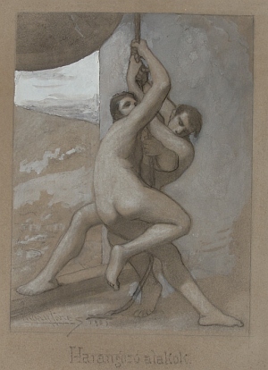 In: Falképtervek, figurális kompozíciók (16. mappa) Adatok: grafika, 1 db, rajz, 311x232 mm, papír, 436x320 mm, kréta, fedőfehér