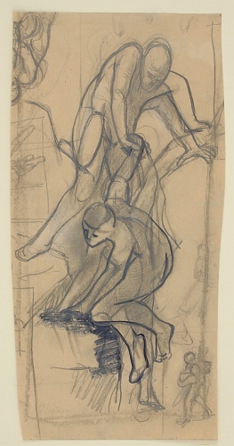 Egymásnak segítő alakok In: Falképtervek, figurális kompozíciók (16. mappa) Adatok: grafika] :, 1 db, rajz, 355x180 mm, zöld papír, ceruza, tinta Információ: Tárgyszavak: Leltári szám: 16/15.b