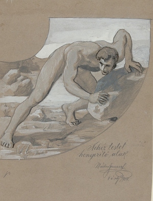 In: Falképtervek, figurális kompozíciók (16. mappa) Adatok: grafika, 1 db, rajz, 347x241 mm, szürke papír, ceruza, fedőfehér és fekete tinta
