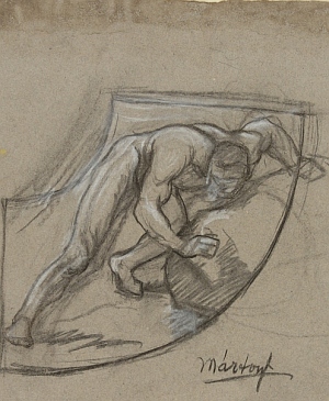 In: Falképtervek, figurális kompozíciók (16. mappa) Adatok: grafika, 1 db, rajz, 240x199 mm, papír, krtéta, fehér és fekete