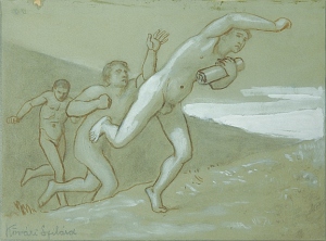 (b.l.) Kővári Szilárd, (l. kartonon) Három futó alak