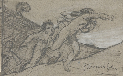 In: Falképtervek, figurális kompozíciók (16. mappa) Adatok: grafika] :, 1 db, rajz, 129x201 mm, papír, ceruza, fehér kréta