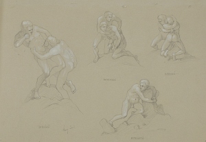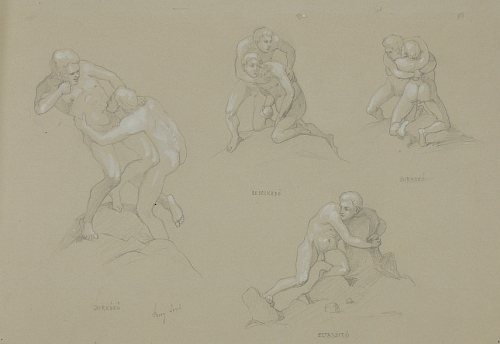 In: Falképtervek, figurális kompozíciók (16. mappa) Adatok: grafika, 1 db, rajz, 303x449 mm, zöld papír, ceruza, fedőfehér