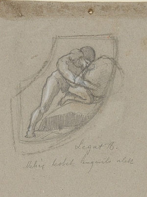 In: Falképtervek, figurális kompozíciók (16. mappa) Adatok: grafika] :, 1 db, rajz, 265x202 mm, szürke papír, ceruza, fehér kréta