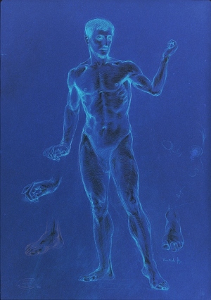 | Álló férfi akt - szemből - vonalas kidolgozás és néhány részlet külön