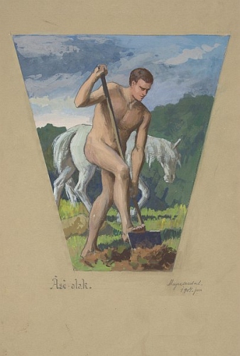 In: Alaktani kompozíciók (23. mappa) Adatok: grafika, 1 db, rajz, 448x311 mm, barnás papír, tempera