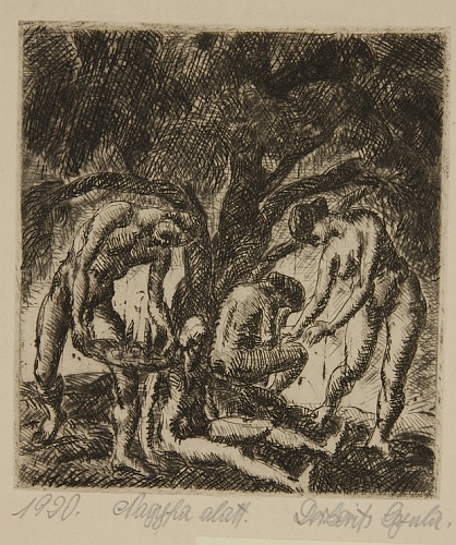 Aláírva az özvegy által (j.l.) Derkovits Gyula (b.l.) 1920, (k.l.) Nagyfa alatt, hátoldalon az özvegy igazolása (1948)