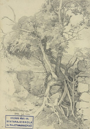 Jelezve (j.l.) B. E., (b.l.) leírás "Szilfatörzs Zebegényben 1898. jul. 6-án" (l.) az Orsz. M. Kir. Képzőművészeti Főiskola bélyegzője