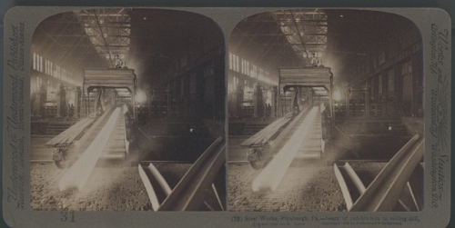 Steel Works, Pittsburgh, Pa. - beam of red-hot iron in rolling-mill, drawn out [?]0 ft. long Adatok: fénykép] , 18x9 cm kartonon 8x8 cm fényképméret Információ: Tárgyszavak: Leltári szám: 4.621