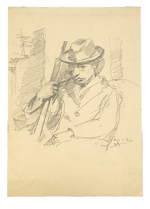 Kalapos férfi fegyverrel
