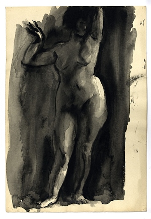 Álló női akt felemelt karokkal