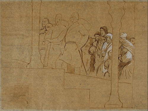 balra középen ceruzával: "horizont"; a rajz hátán (j.l.) ceruzával "Kecskeméti városház", tintával: "Atyám, Székely Bertalan hagyatéka, özv. Antal Gyuláné, Székely Ilona"
