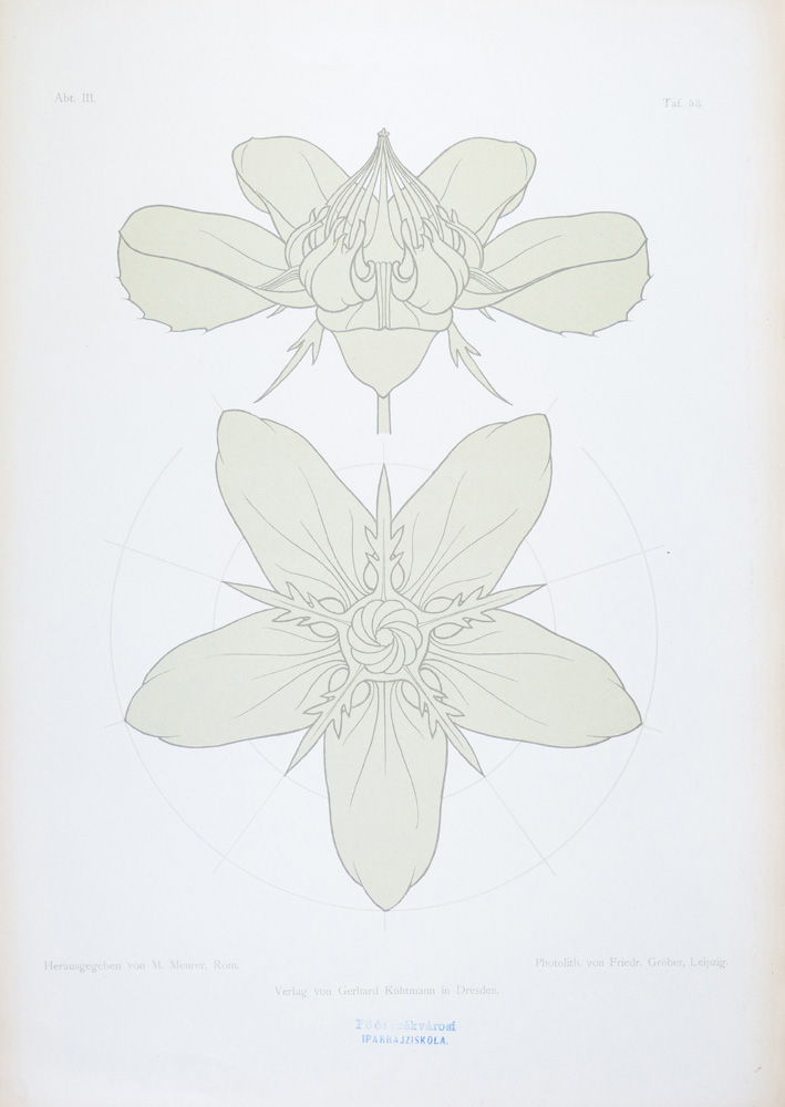 "Abt. I. Taf. 53. Pflanzenformen. Vorbildliche Beispiele zur Einfu¨hrung in das ornamentale Studium der Pflanze; zum Gebrauche fu¨r Kunstgewerbe- und Bauschulen, Technische Hochschulen und ho¨here Unterrichtsanstalten sow" ie fu¨r Architekten und Kunsthandwerker. Dresden : Verlag von Gerhard Ku¨htmann, 1895