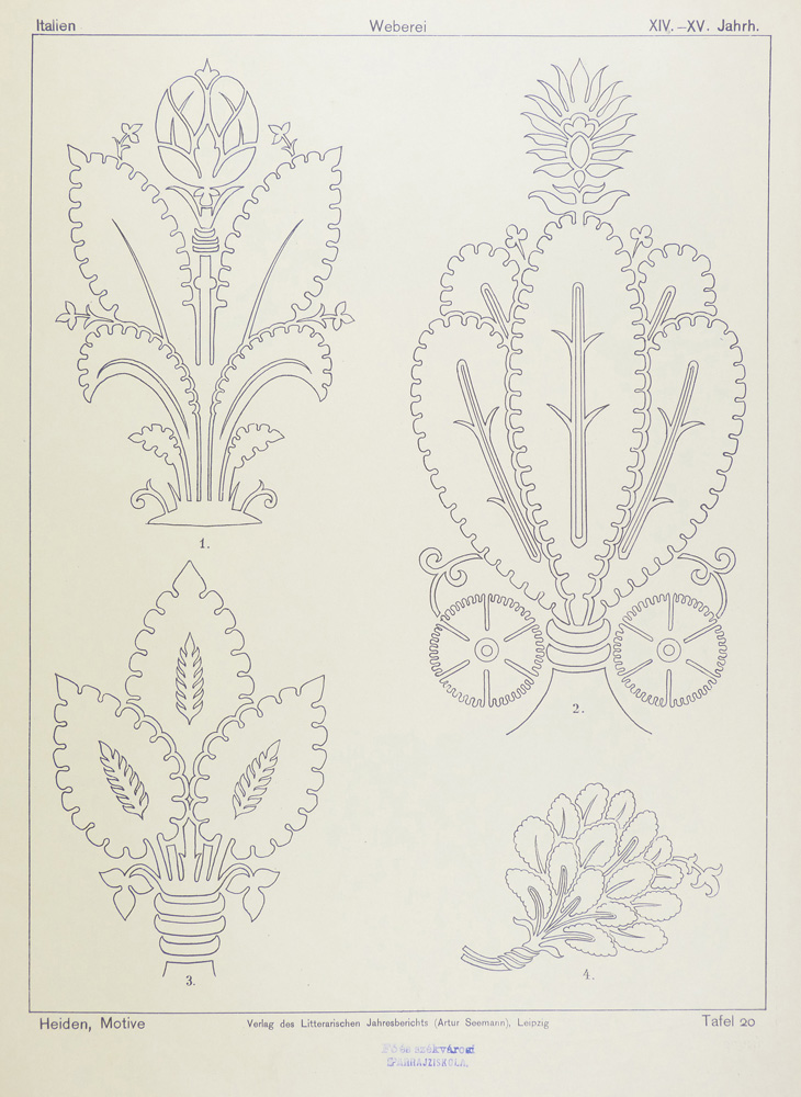 Tafel 20. Motive. Sammlung von Einzelformen aller Techniken des Kunstgewerbes als Vorbilder und Studienmaterial. Leipzig : Verlag von Artur Seemann, 1892