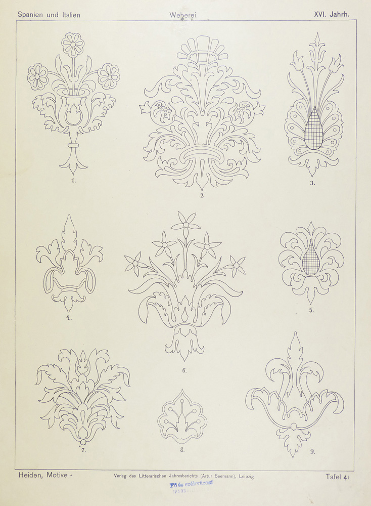 Tafel 41. Motive. Sammlung von Einzelformen aller Techniken des Kunstgewerbes als Vorbilder und Studienmaterial. Leipzig : Verlag von Artur Seemann, 1892