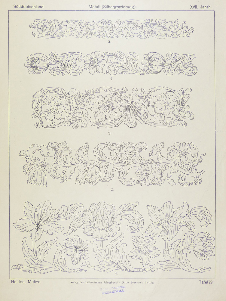 Tafel 79. Motive. Sammlung von Einzelformen aller Techniken des Kunstgewerbes als Vorbilder und Studienmaterial. Leipzig : Verlag von Artur Seemann, 1892
