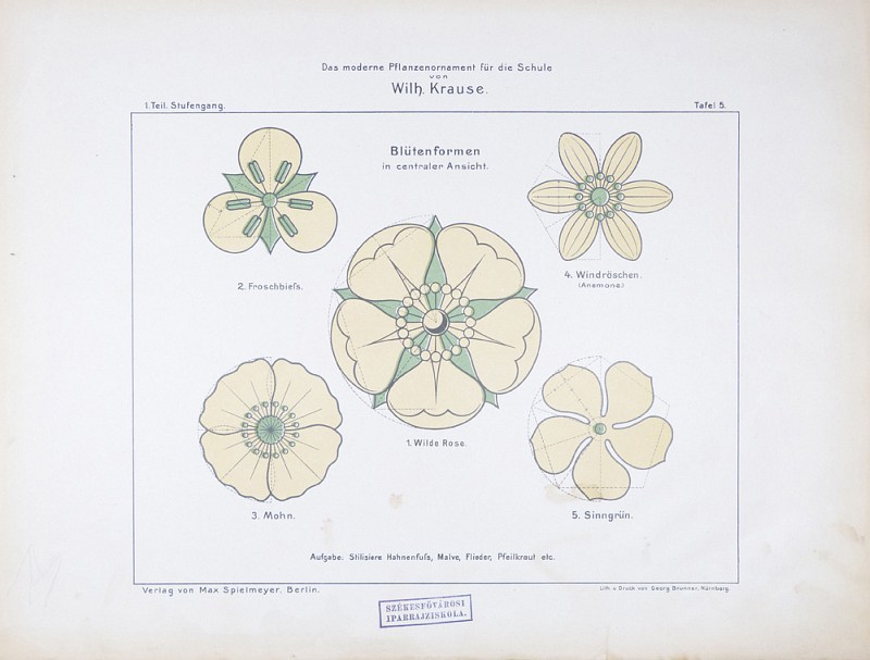 1. Teil. Tafel 5. Das moderne Pflanzen-Ornament für die Schule. I Teil (Stufengang). Berlin : Max Spielmeyer, [1902]