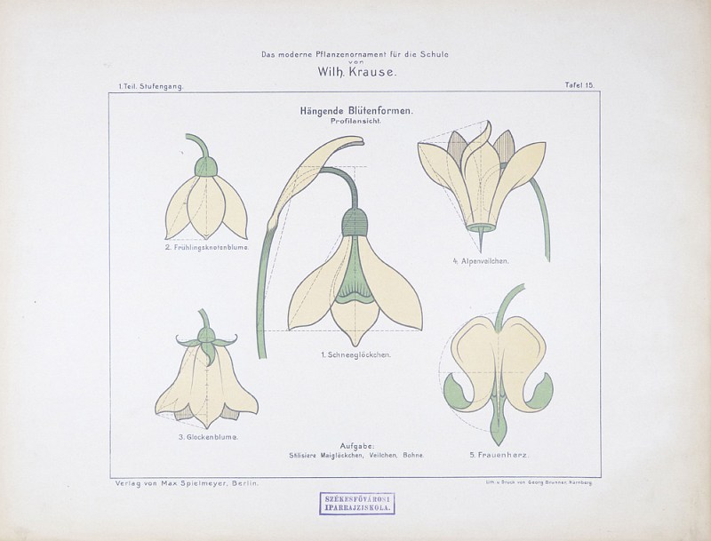 1. Teil. Tafel 15. Das moderne Pflanzen-Ornament für die Schule. I Teil (Stufengang). Berlin : Max Spielmeyer, [1902]
