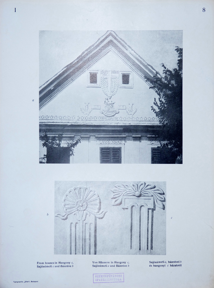 20. század, díszítőművészet, építészet, építészeti részletek, épületornamentika, Közép-Európa, Magyarország, mintakönyv, művészeti oktatás, népi építészet, népművészet, ornamentika mintalap