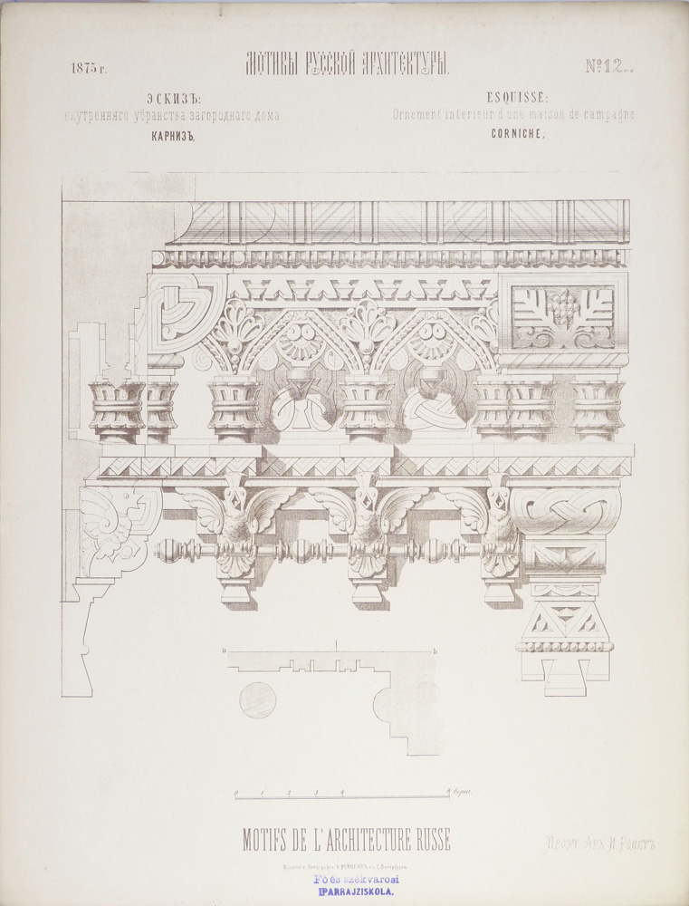 19. század, díszítőművészet, építészet, építészeti mintalap, építészeti részletek, épületornamentika, faépítészet, iparművészet, mintakönyv, ornamentika mintalap, Oroszország