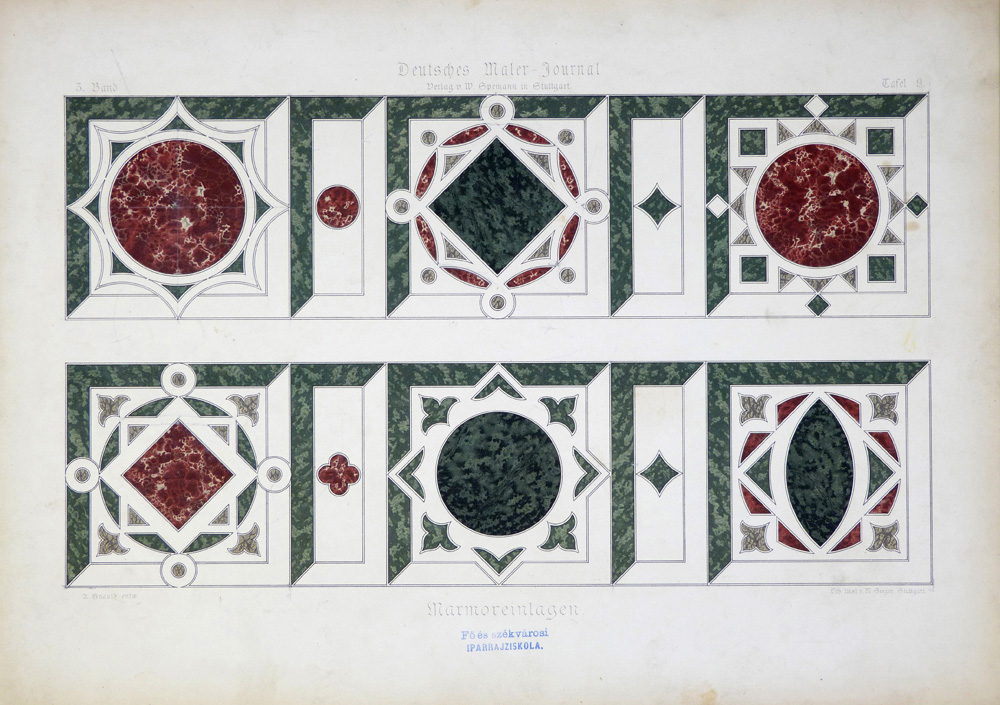 19. század, belsőépítészet, díszítőművészet, építészet, építészeti mintalap, építészeti részletek, falfestészet, ornamentika mintalap, Németország