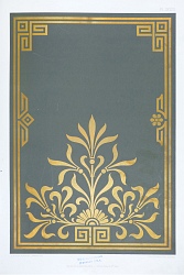 Ornament in Gold- und Farbendruck zur Verzierung einer aufsteigenden Füllung, nebst Eck- und Zwischenmotiven
