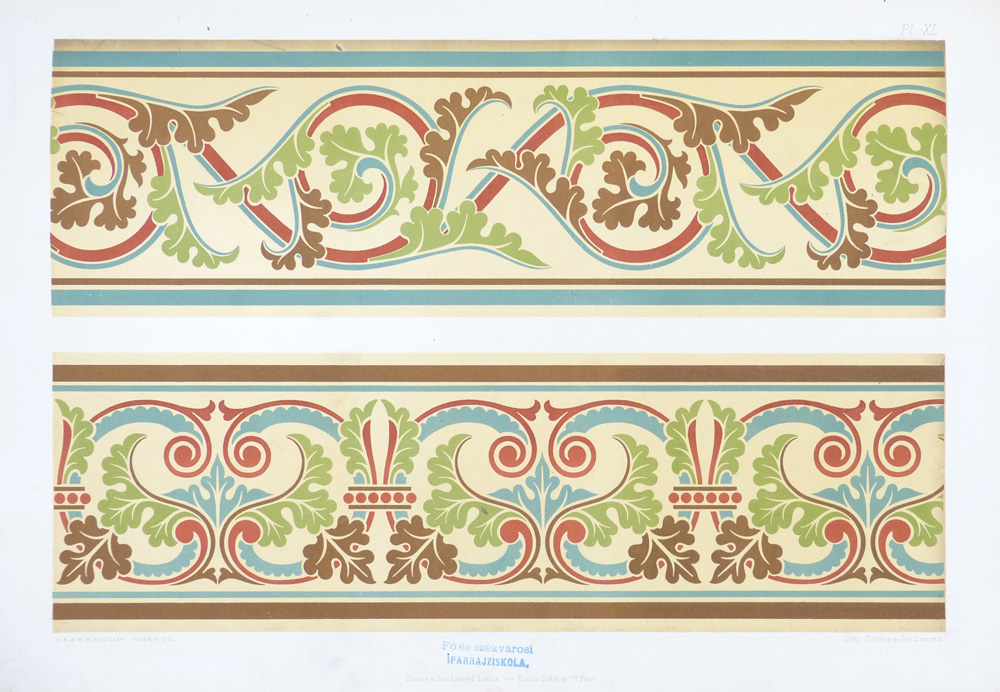 19. század, díszítőművészet, épületornamentika, falfestészet, iparművészet, mintakönyv, művészeti oktatás, növényi ornamentika, ornamentika mintalap, rajzoktatás,