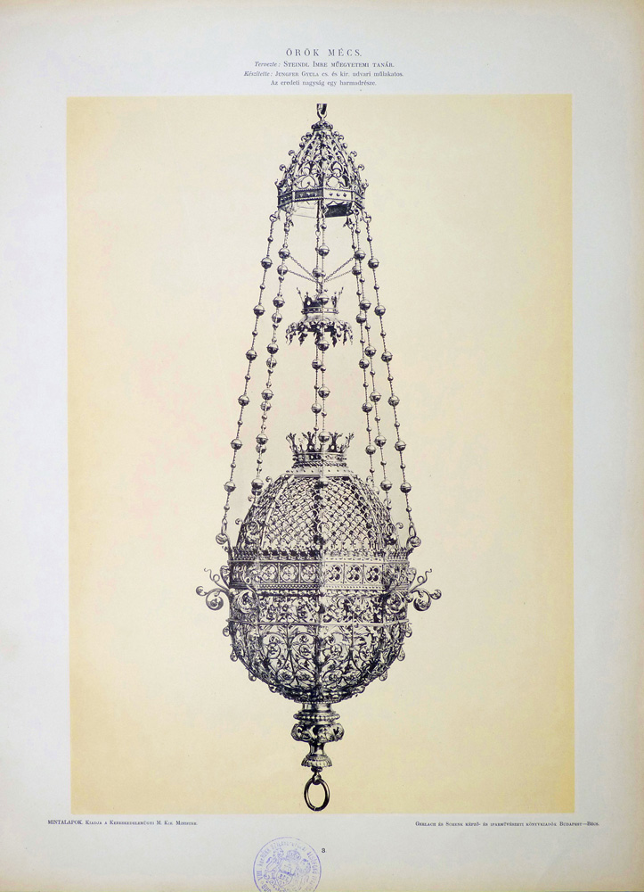 Örök mécs. Tervezte: Steindl Imre műegyetemi tanár, Készítette: Jungfer Gyula cs. És kir. Udvari műlakatos